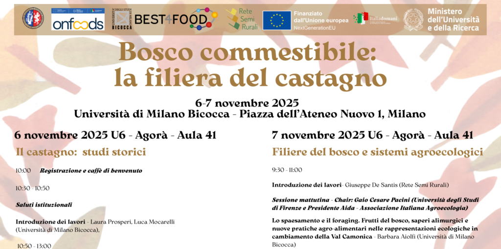 On November 6–7, 2025, the University of Milano-Bicocca will host a conference dedicated to chestnut trees and forest supply chains, bringing together historical, economic, and agroecological perspectives. The event, held at U6 – Agorà, Aula 41, will offer an interdisciplinary platform for historians, researchers, agronomists, and foresters to discuss this iconic tree and its role in Italian rural landscapes and economies.